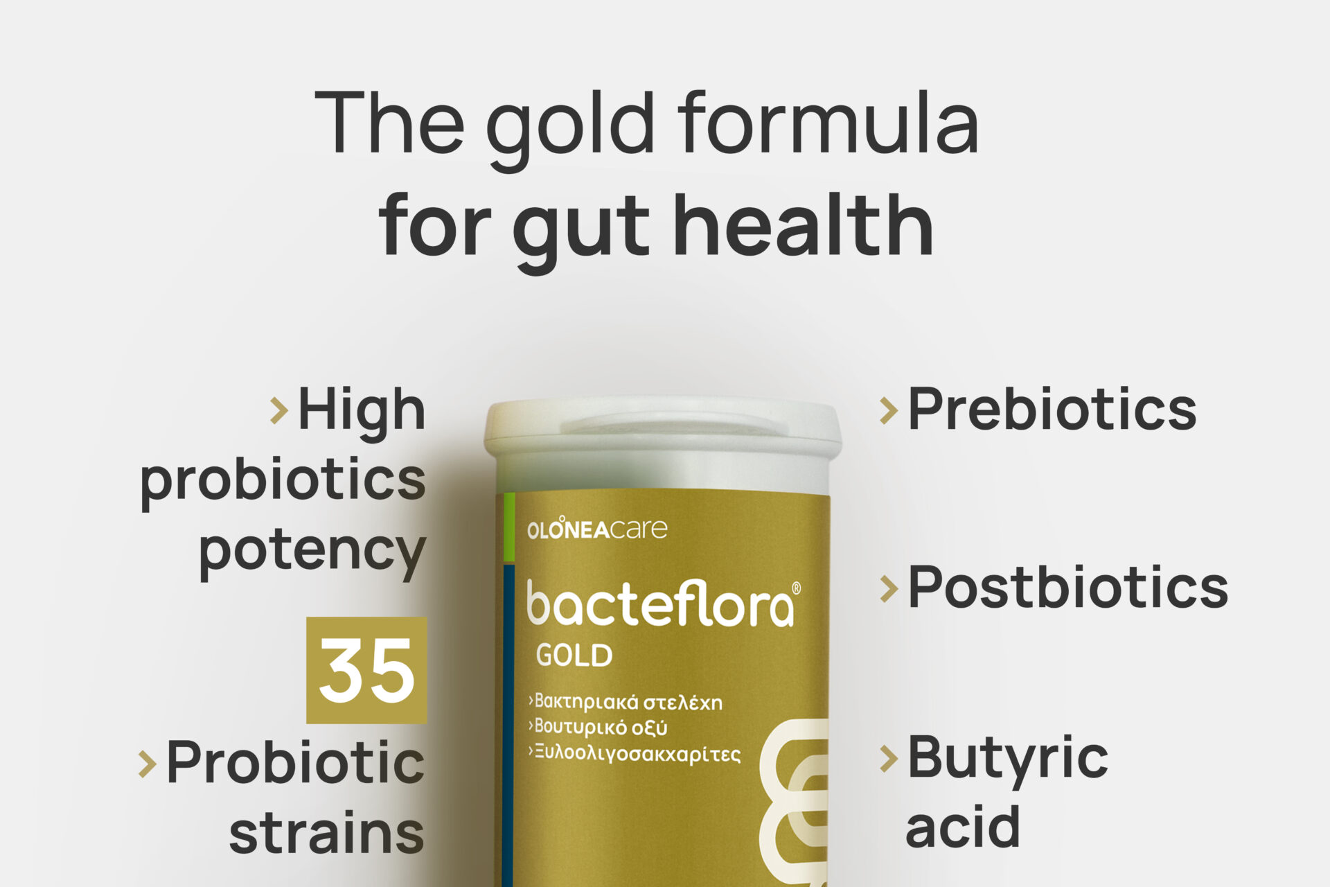 The most advanced formula by OLONEA for optimal gut health. Contains 35 probiotic, 100 billion CFU per capsule, postbiotics, butyric acid and prebiotic XOS. Powered by high-potency probiotics, this formula is designed for those dealing with serious or chronic digestive issues, this formula also provides targeted support for those suffering from Inflammatory Bowel Diseases (IBD). It’s the ideal choice for anyone seeking advanced, gut health support on a daily basis.