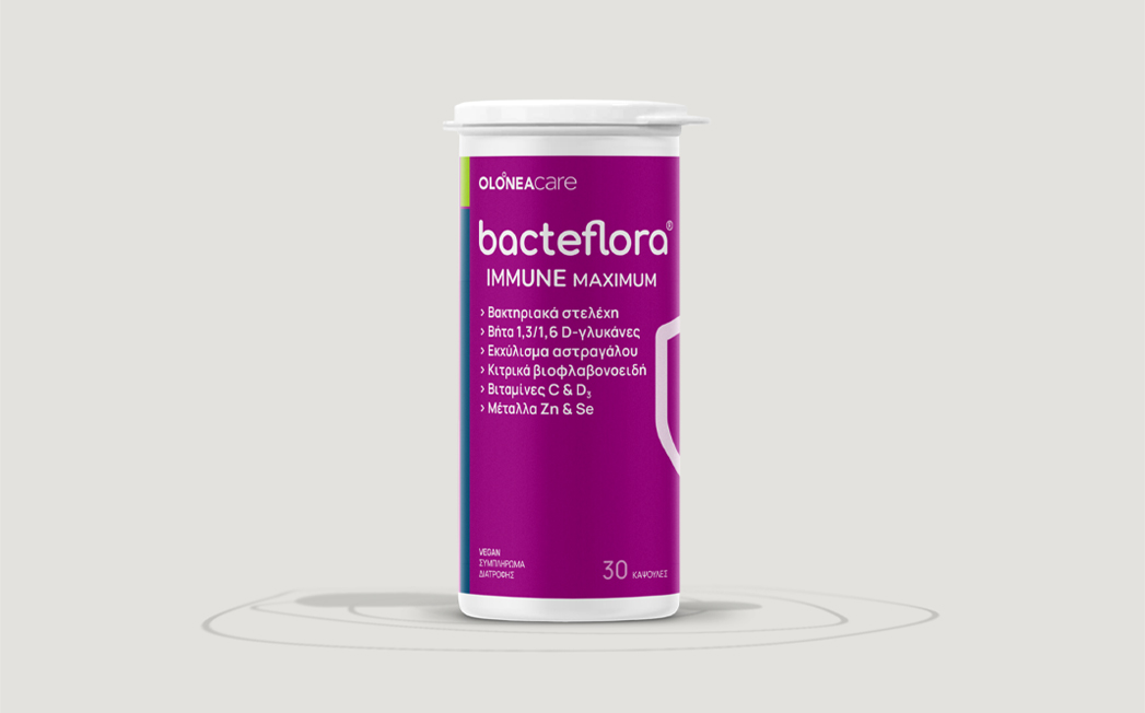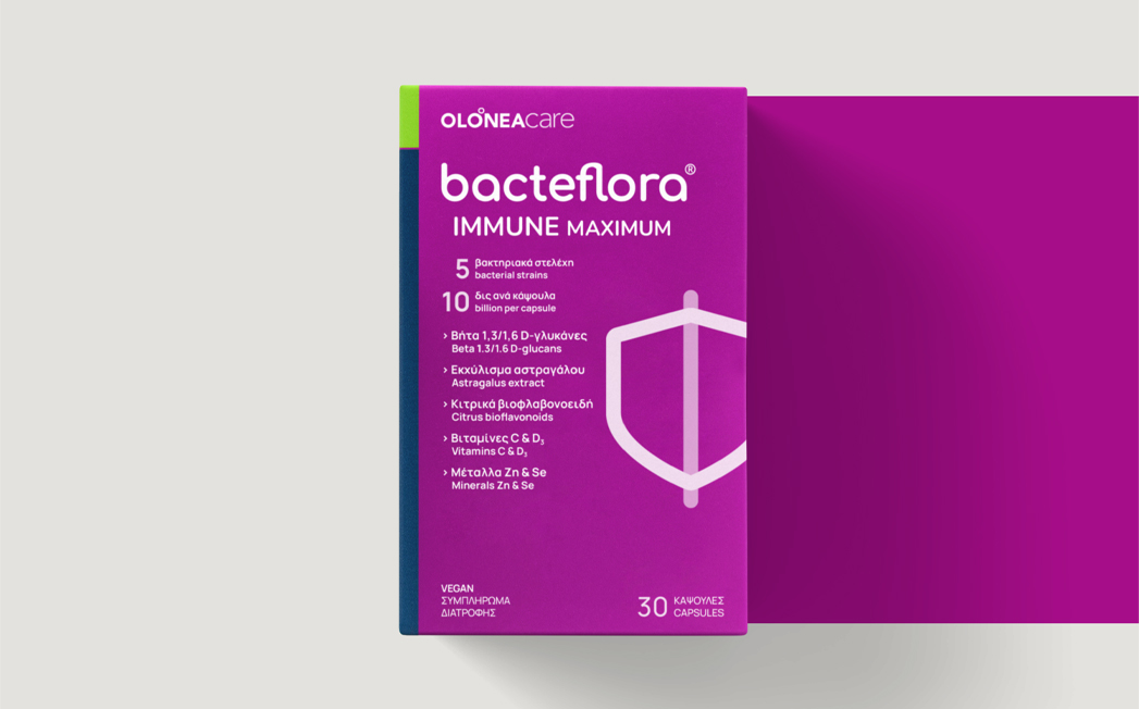 A food supplement, with a special composition of 5 probiotic strains, 10 billion bacteria CFU per capsule, vitamins C & D₃, zinc, selenium, beta – 1,3/1,6 -D – glucans, astragalus extract and citrus bioflavonoids. Supports intestinal microbiome and immune system and it is sutitable for people with a sensitivity to upper respiratory infections.