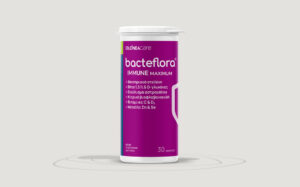 bacteflora® PLUSHigh potency gut health formula with probiotics, postbiotics and prebiotics for restoring the gut microbiome. Especially designed for disturbed gut microbiome and symptoms of Irritable Bowel Syndrome.