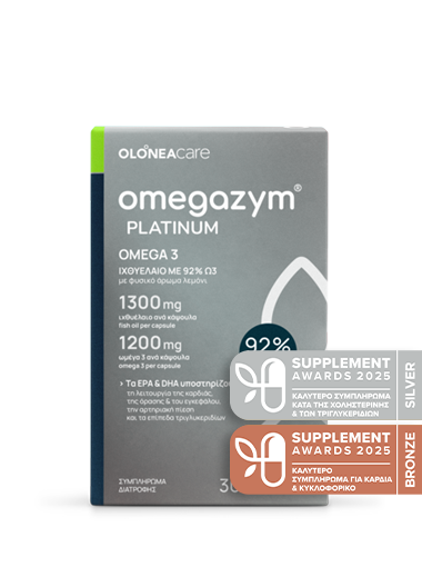 omegazym® PLATINUMRead more1,000 mg of fish oil, distilled five times, and of pharmaceutical purity of 85%, with 850mg of EPA and DHA omega-3 fatty acids per capsule. Its origin are small fish from Antarctica. Special anti-reflux formula, without leaving taste of fish.
